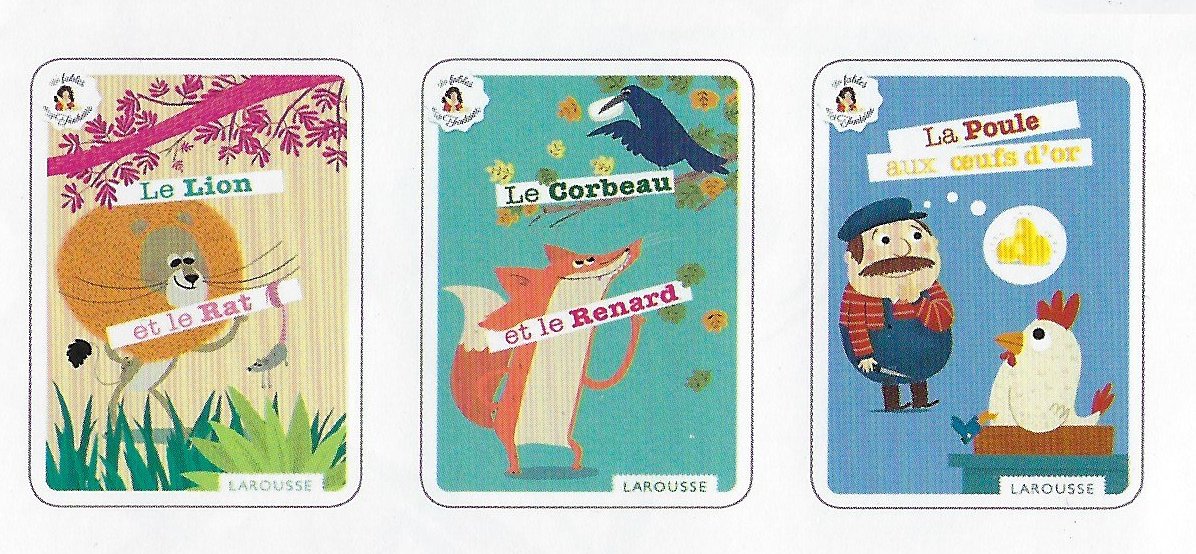 There are apparently eight pamphlets in this "Collection Les Fables de La Fontaine" series from Larousse. Of the eight, I found two this summer in Europe and I just ordered two. Now I have found the other four. They are brought together in the French "Mon grand livre des Fables de La Fontaine."