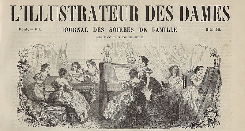 1863 L'Illustrateur des Dames et Demoiselles: Journal des Soirées de Famille, 3e Année, No 19. May 10, 1863. A. Pastelot. Newsprint magazine. Paris. $16 from Scaviner Libraire, Saint-Etienne, France, through Ebay, Feb., '19.