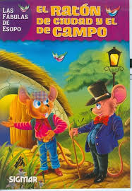 | 2011 El Ratón de Ciudad y el de Campo. Paperbound. Buenos Aires, Argentina: Colección Las Fábulas de Esopo: Sigmar. $5.40 from Christian Tottino, Argentina, through Bidstart, Oct., '14. This is a 16-page pamphlet 4½" x 6½". There is one sentence of the story and one image per page. In this version, the two mice are clothed. Both are clothed in human fashion, and the country mouse has a natty plaid cap. The rejected food in the country includes a huge ear of what we Americans call corn. The city mouse gets to the sumptuous feast by climbing up the table cloth. They are prevented from eating first by a woman and then by a cat. The moral: "Haz lo que creas más conveniente para ti.."