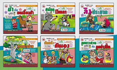 This traditional story is usually told with a giant hunk of wood tied around the fierce dog's neck to warn others. Here his owner uses a cage, pole, chain, and collar. As in the fable, the miscreant takes this special care as a sign of admiration, not as a punishment. There is a final stage in this version not, I believe, regularly in the traditional story: the other dogs laugh at this dog's misperception. The stated moral is "Roguery always leads to doom." The English editing of this story suffers from start to finish, particularly with confusion between "a" and "the" in narrating a story. The miscreant dog gets off this statement: "Both of collar and cage are the rewards from my boss. You are jealous me." The front-cover on both sides has symbols for Green Life publishing, Green Ocean paper, and yessoy ink. The publisher's symbol seems to be two purple heads reading an open red book; it is repeated three times. There is a page of vocabulary on the inside back cover, with a picture of all six books in the series on the back cover. The pamphlet is twelve pages long, about 7½" x 6¾".
