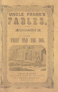 1851 Uncle Frank's Select Fables for Good Boys and Girls II: The Thief and the Dog. (Cover: Uncle Frank's Fables for Children.) Francis Channing Woodworth. NY: Wm. H. Murphy. $25 from Harold Burstein, Oct., '92.