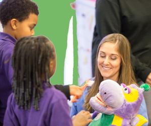 Professional giving dental instruction to young person