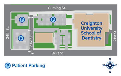 The Creighton University Dental Clinic is located at 2109 Cuming Street, Omaha, NE 68102.
