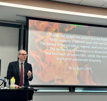The dinner lecture, “American Deterrence is Failing,” scheduled on September 12, 2023 in Harper Center at Creighton University is cancelled. The cancellation of this event is made upon the speaker’s request, due to temporary and unforeseen circumstances beyond his control.