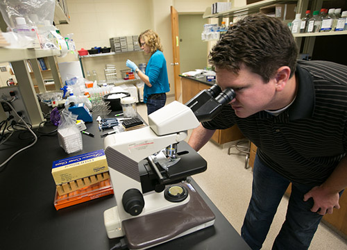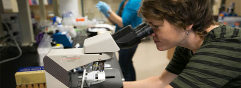 The department occupies 16,000 square feet of space in modern buildings. More than three-quarters of the available space is used for research laboratories, which are completely equipped with all essential facilities, including a BSL-3 biocontainment facility. There is also a centrally located departmental pool of major equipment. Ample space is provided for each student. Well-appointed animal quarters and an animal operating room are available. Our affiliated Clinical Microbiology Laboratory is well equipped for extensive instruction in diagnostic microbiology, immunopathology, and viral serology. The Health Sciences Library has more than 210,000 volumes and currently receives 1,600 serials.