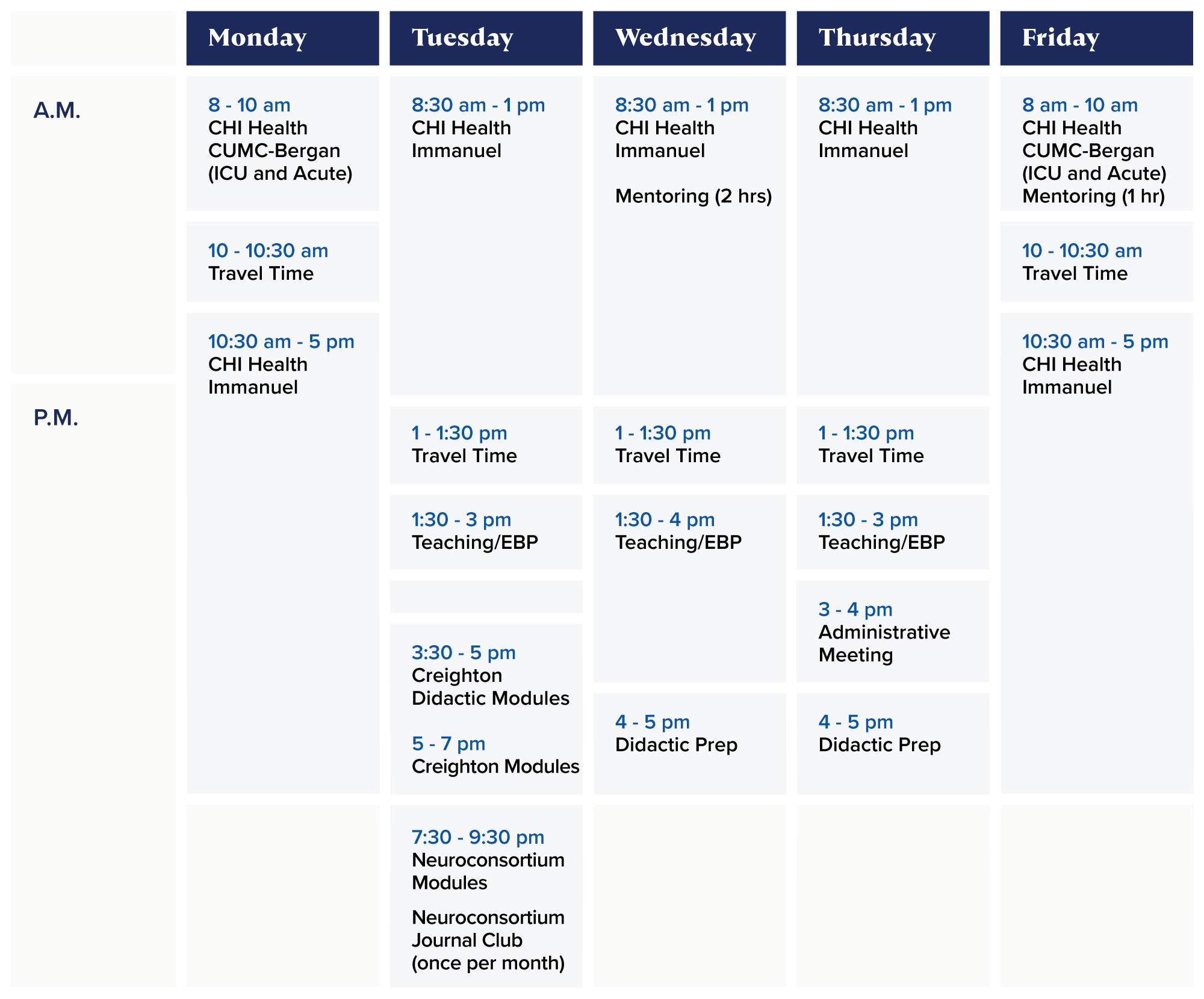Accelerate your path to clinical specialization with the neurologic physical therapy residency program at Creighton University in Omaha, Nebraska. The high-energy, one-year clinical immersion experience is designed to help you quickly progress from a new practitioner to a clinician with the confidence to thrive in a challenging clinical environment. You’ll receive quality mentorship in your clinical and teaching skills, as well as exposure to advanced technologies. Upon graduation, you’ll become eligible to take the American Board of Physical Therapy Specialties (ABPTS) Neurology Specialist Certification Examination.