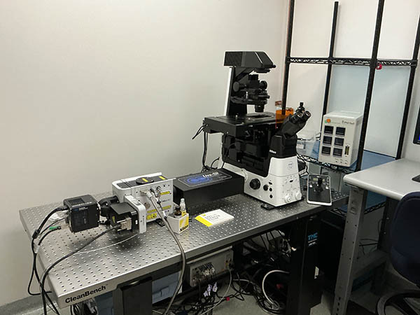 This spinning-disk confocal can image at speeds up to 1,000 frames per second, making it our only confocal microscope that can image in “real time”.